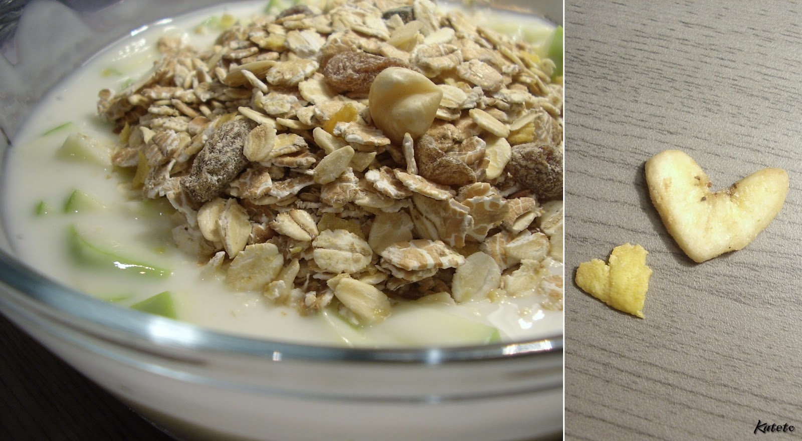 I think that my breakfast is trying to tell me something.. These two hearts were right on top of the muesli pile in my bowl.